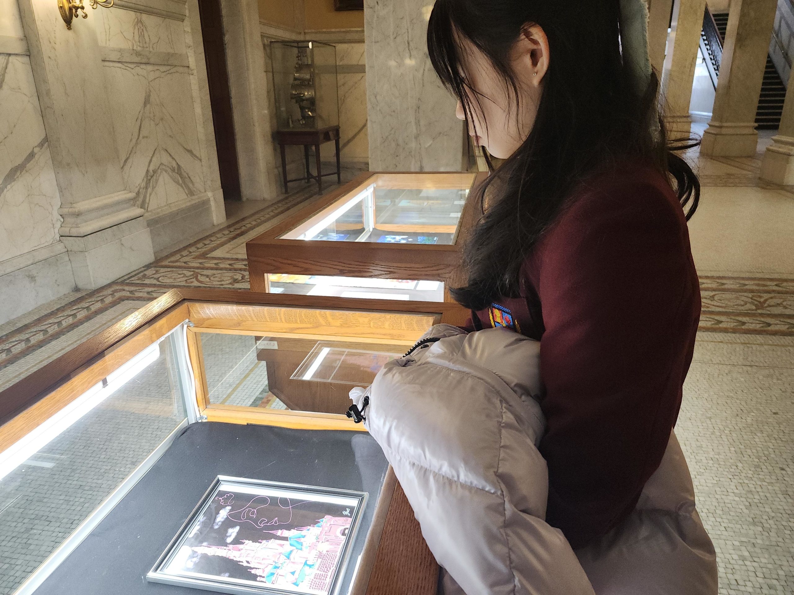 As part of this recognition, Christie and Linus visited the Ontario Legislature to see their artwork on display and celebrate this meaningful achievement. While Victoria was unable to attend in person, her work was also proudly included as part of the exhibition.